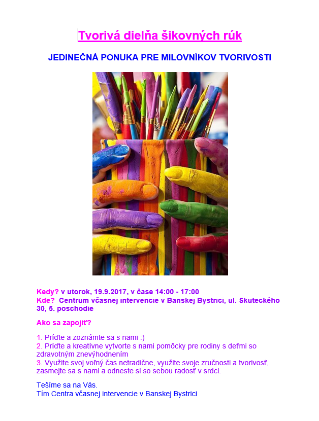 V našom centre máme pravidelne priestor a čas na príval novej kreatívnej energie, ktorej výsledkom sú úžasné pomôcky pre našich klientov.