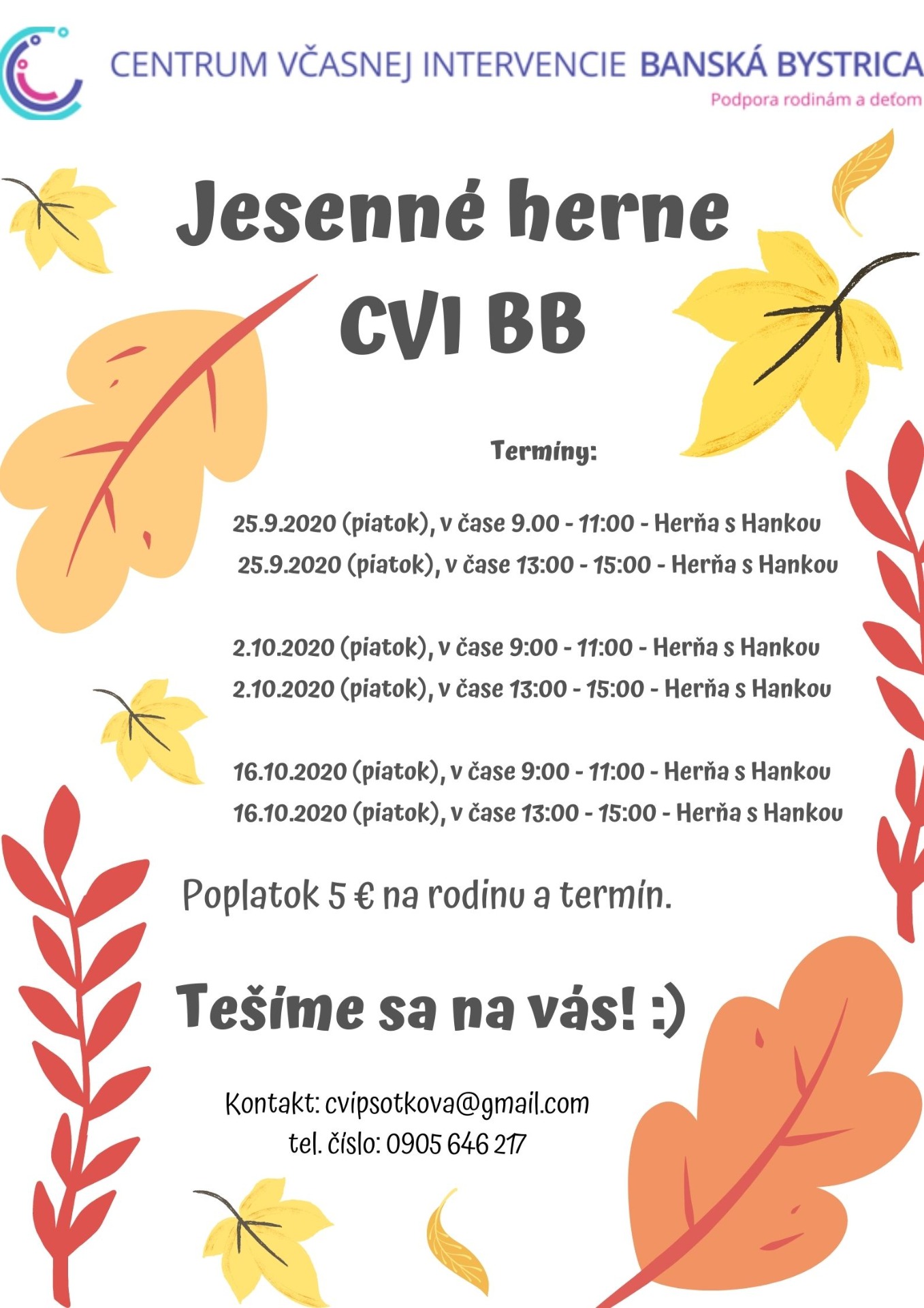 Aj na jeseň pokračujeme s otvorenými herňami pre naše rodinky. Tešíme sa na spoločné stretnutia v príjemnej atmosfére!