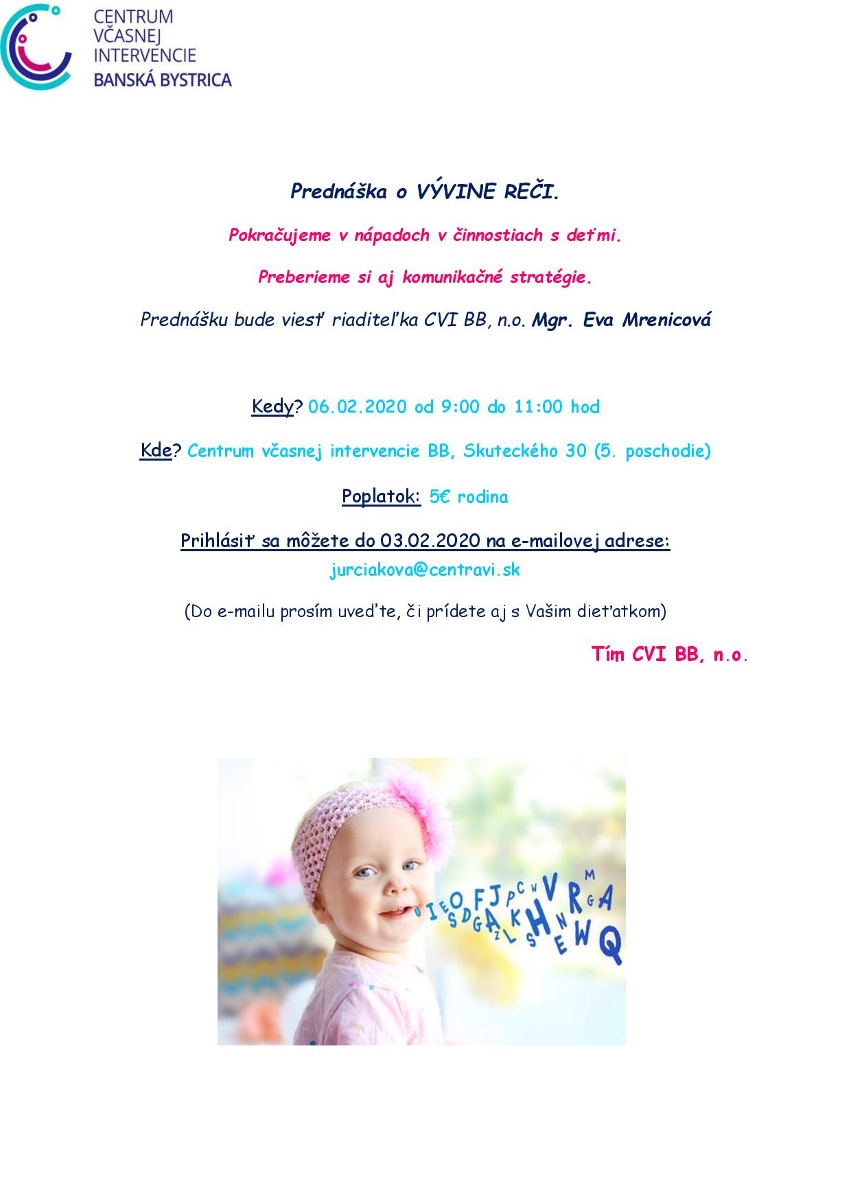Pre veľký záujem pokračujeme v prednáškach o vývine reči. Naďalej si budeme hovoriť o činnostiach, v ktorých rozvíjame deti a preberieme si tiež komunikačné stratégie. Tešíme sa na Vás.