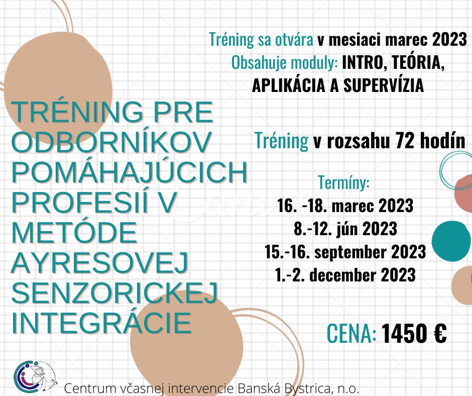 TRÉNING PRE ODBORNÍKOV POMÁHAJÚCICH PROFESIÍ V METÓDE AYRESOVEJ SENZORICKEJ INTEGRÁCIE, MAREC 2023 - DECEMBER 2023